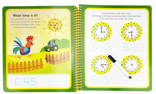 Includes a variety of activities that practice writing letters and numbers, telling time, distinguishing between upper and lowercase letters, and more. More than 30 fun activities encourage the development of fine motor skills and cognitive skills. Easy-to-follow instructions and tracing lines keep kids ages 3-5 years old on track with their handwriting practice and skills. Includes more than 75 stickers for extra fun! Wipe clean pages are easy to write & erase over and over again! Pages wipe clean with a soft, damp cloth, allowing kids to practice over and over again.
