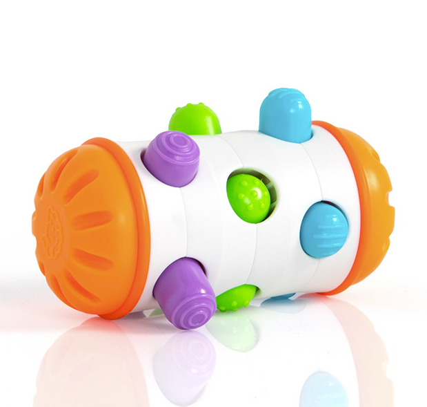 The colorful textured pegs move in and out as the cylinder rolls on its soft silicone tires.