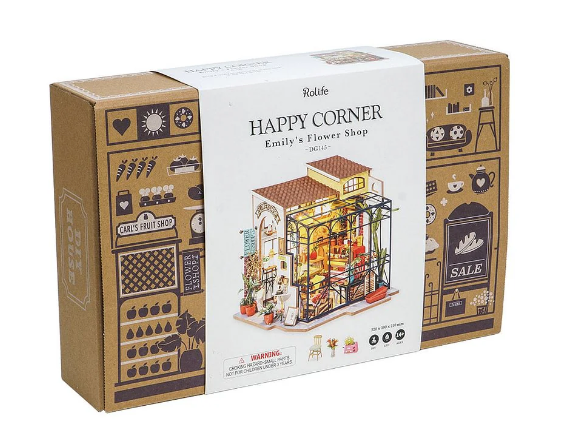 This is Emily's Flower shop, a great place to buy flowers in the neighborhood. Feel free to build this miniature house with your own hands and decorate it in the way you like!