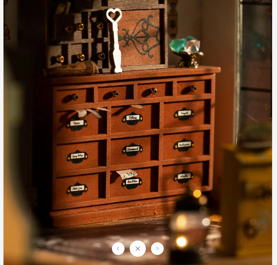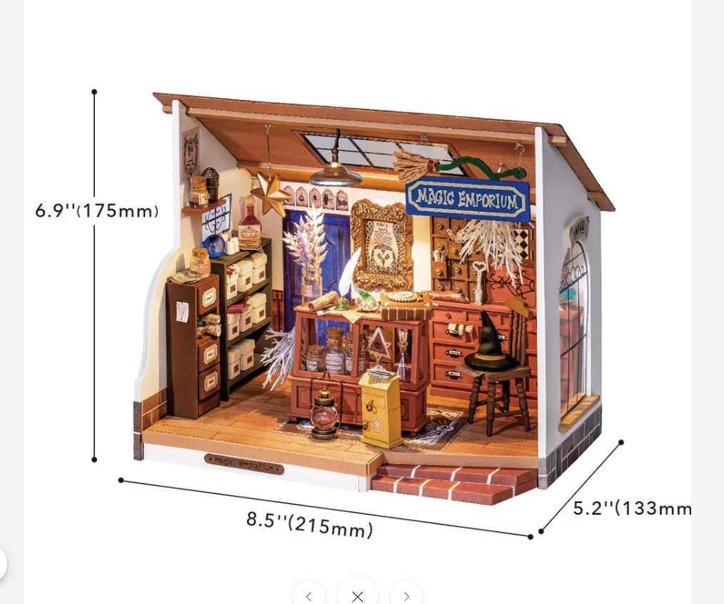 Rolife Kiki's Magic Emporium DG155 is a mysterious DIY Miniature House from the Mystic Archives Series. Combined with the classic color scheme and elements, the designer created a store for the innocent and cute little witch Kiki after she became a solo operator.