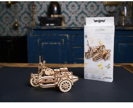 Hagrid's Flying Motorbike™ Mini Model with Sidecar, from the Ugears Harry Potter™ collection, is a miniature copy of the flying motorbike that Sirius Black, Harry Potter's godfather, lent to Rubeus Hagrid to deliver the newly-orphaned infant Harry to the Dursley home. Sixteen years later Hagrid retrieved Harry from the same address just before Harry's protection spell wore off, only this time the teenage wizard rode in a sidecar.