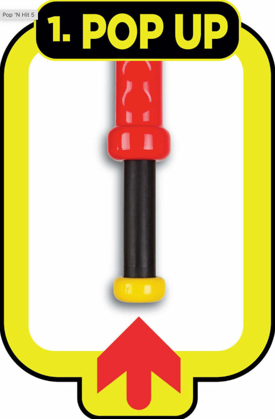 With the Pop 'N Hit Bat, you can easily pitch to yourself or your friends! Simply PULL, & POP - Balls pop every time! The Pop 'N Hit has a unique patent pending design that pops balls out one at a time for perfect practice. The pop-up self pitching mechanism at the end of the bat launches balls 5' to 10' in the air to allow for a full swing. Features a 28" length and a durable, high-impact plastic construction.