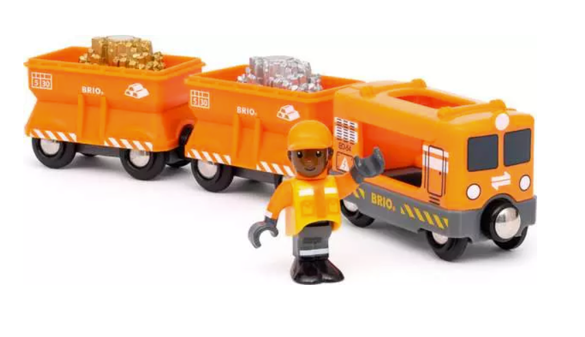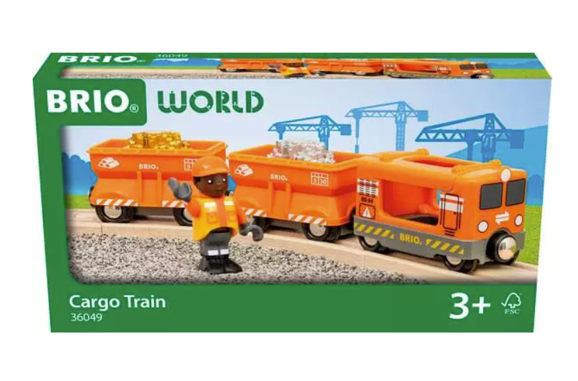 Haul the most precious loads with the 36049 Cargo Train. This vibrant orange toy train comes with two cargo wagons that are filled to the brim with gold and silver loads. Pop the engine roof open and drop the cargo-themed character into the driver’s seat before chugging off down the tracks. Equipped with classic BRIO magnetic connections, this toy train and accessories integrate seamlessly into BRIO World lift and load train sets and other cargo-themed toys.