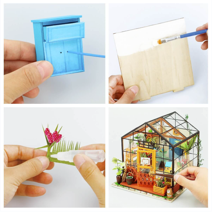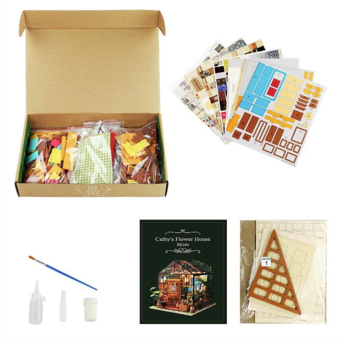 Cathy's Flower House is one of the most popular Rolife DIY miniature house kits. With so many cute little plants, flowers, vases, flower racks, slatted crates, wooden cabinets, paper boxes, photo frames, spades, brooms, paintings, etc., this flower house will make you smile whenever you see it. We have prepared every piece and tool you'll need for this DIY experience. Let's build this fabulous flower miniature dollhouse and share the happiness it brings to you with your family and friends!