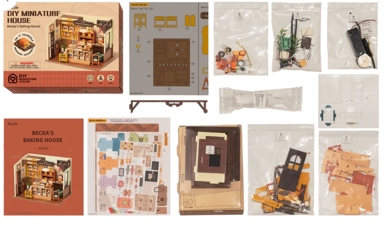 Start your morning with some pastries and other baked goods at Becka's Baking House. From cupcakes to baguettes to bagels, Becka's has something for you to enjoy! Becka's Baking House is perfect for you whether you're a veteran miniaturist or a beginner! This little shop will keep you busy as you design and create your perfect little space. Kids and adults alike can enjoy our miniatures.
