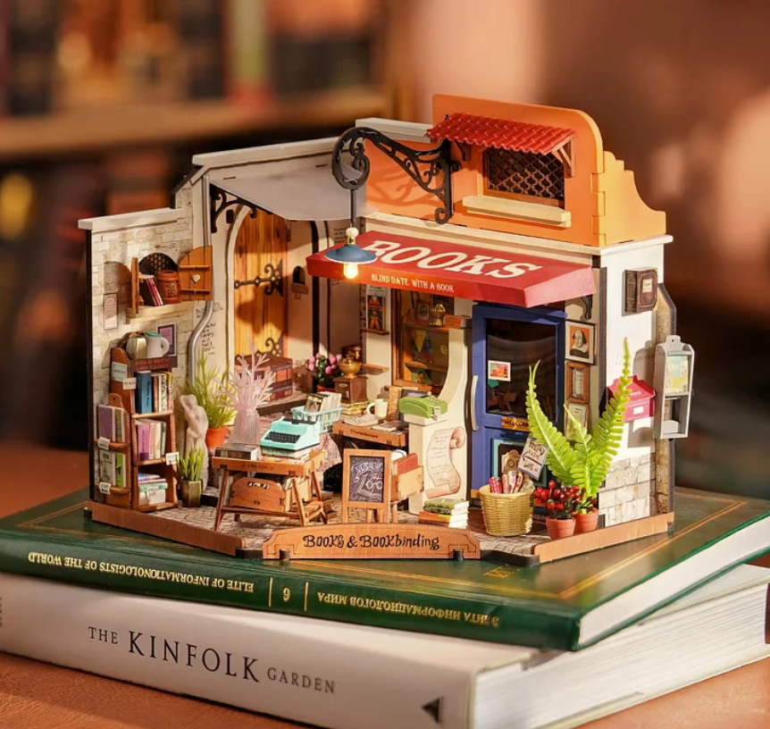 Welcome to the charming world of our DIY Miniature Corner Bookstore House! Follow the cobblestone path, lined with miniature street lamps and potted plants, as it meanders past the storefront windows filled with treasures waiting to be unearthed. Peer through the glass and catch a glimpse of shelves overflowing with used books of every genre, their well-loved pages whispering tales of adventure, romance, and mystery.
