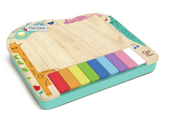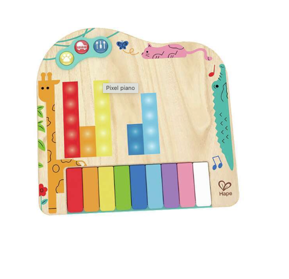 With the Hape Dynamic Pixel Piano children can explore colours, animals, and melodies with 3 musical play modes. Perfect for aspiring musicians! Witness the magic unfold as the wooden feeling surface transforms into a mesmerizing pixel screen. Delight in pixelated animals and vivid colours, sparking curiosity and wonder.