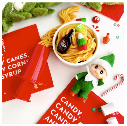 Includes: 8 oz Yellow (Maple Syrup) KidDough, Elf Figurine, Noodle Shaped Dough Extruder, Candy Corns, Candy Canes, Swirly Mints, Candy Charm Mix-Ins, Maple and Chocolate Syrup Charms, Marshmallow Charms