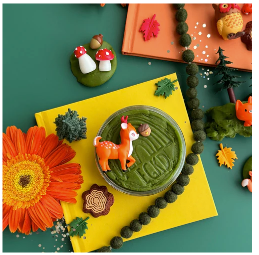Includes: 8 oz jar of Green (Forest Fir) Scented KidDough, Deer, Owl, Squirrel and Woodland Friends Figurines, Pine Trees, Autumn Leaves, Logs, Mushrooms and Acorn Charms, Convenient Resealable Storage Bag