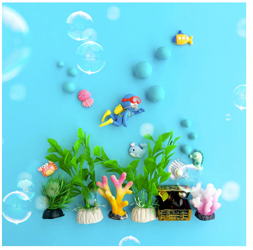 Includes: 8 oz Light Blue (Blue Hawaiian) KidDough with Ocean Charms Hidden Inside - Crab, Seahorse, Submarine, Jellyfish, Whale, and Mermaid, Scuba Diver Figurine, Aquatic Plants, Coral Resin Figurine, Iridescent Shell and Treasure Chest Complete with Treasure Inside