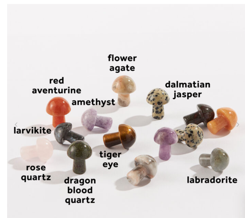 Fun mini carved crystal mushrooms bring joy to both children and adults! They are a great addition to loose crystal offerings. They can also be used in crystal grid making to tap into the fairy realm, and pair well with our Assorted Crystal Skulls and other mini tumbled crystals.