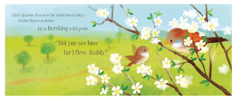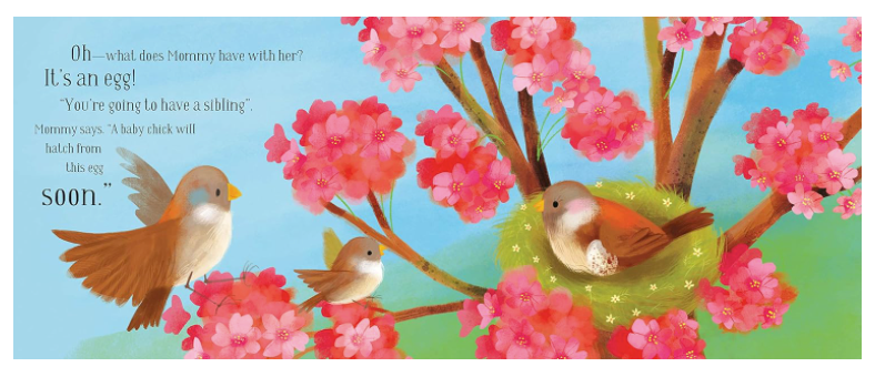 Little Sparrow is learning to fly! Soon, he is flapping his wings high above the forest. He's not a baby anymore, and when Little Sparrow returns to the nest, he discovers a surprise. Mama has laid an egg. Little Sparrow is going to be a big brother! Join our little feathered friend as he explores the delightful expectations and bashful apprehensions of adding a sibling to the family.