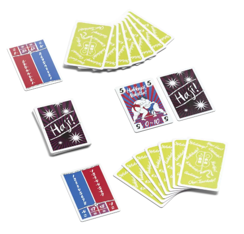 On Tour is a 20 minute route-building, roll-and-write board game with large, premium components that's good for 1 to 8 players (but can be played with as many people who have maps!). Each turn, dice determine which numbers you write while cards restrict the places you can visit.