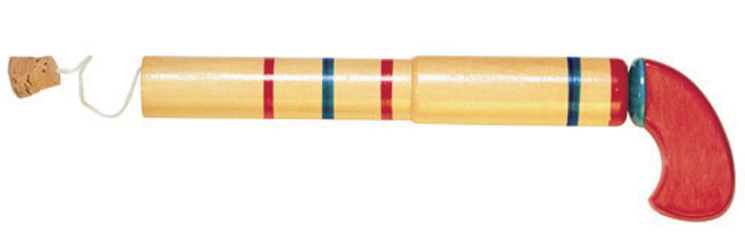 Simply brilliant fun. A clever string and cork mechanism releases a gentle yet satisfying pop when the plunger is pulled by the mechanism. The perfect present for a pesky little tyke! A great favourite and splendidly noisy.