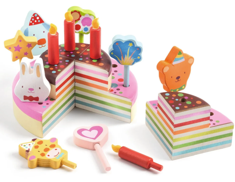 Happy Birthday! A delicious cake to be decorated and shared at your birthday party. Inside this lovely wooden box, you’ll find 8 accessories and 4 candles to decorate the rainbow cake. Once the cake is ready, it’ll look amazing! Now just blow out the candles and tuck in with your friends.