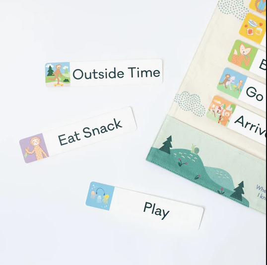 Our visual schedule is one of our favorite tools for adding structure to children’s daily lives. Easy to follow and flexible with moving pieces, this is a great resource to help pre-readers alleviate anxiety and follow routines with more confidence and independence.