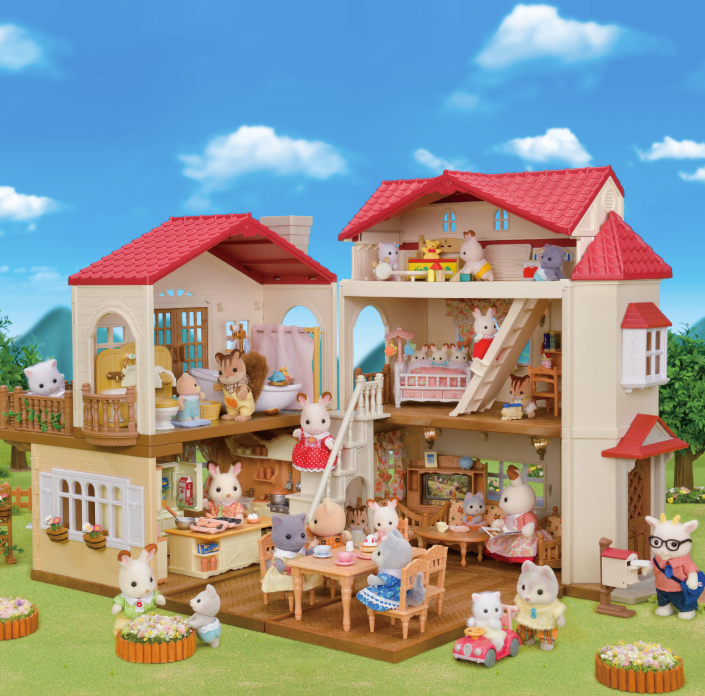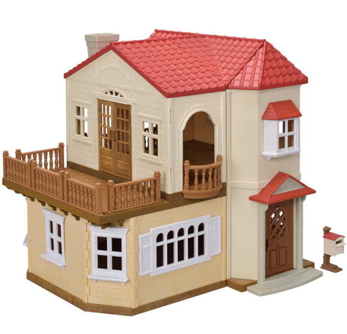 - Red Roof Country Home -Secret Attic Playroom- features a large house that can be opened up for play. Includes a lamp that lights up.
