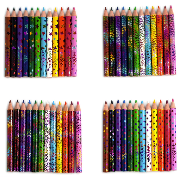 In each assortment there are 24 small pencil packs. Each pack contains a rainbow of 12 color pencils.