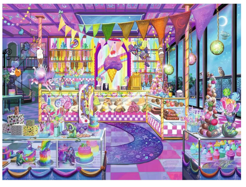 Sweeten your child’s imagination with a fantastical treat shop where tiny dragons take tea in this whimsical “Stardust Scoops” jigsaw puzzle!