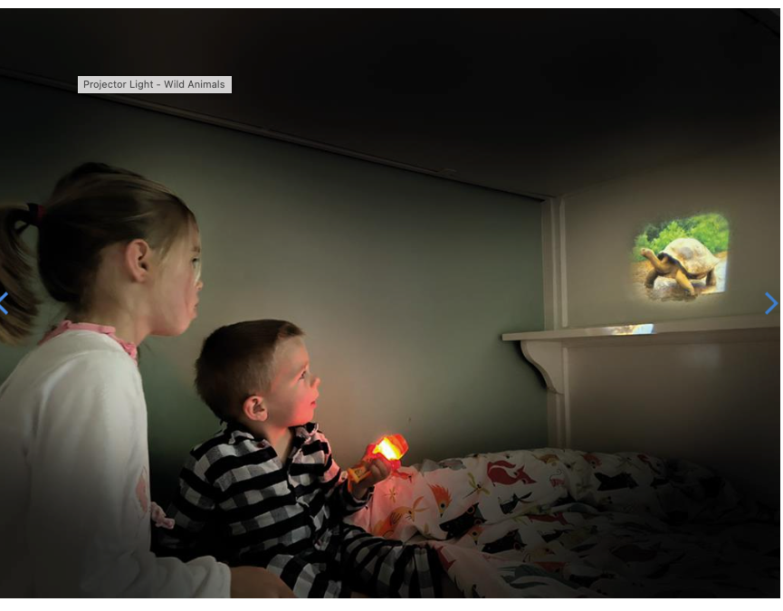 Transform your room into a wild safari adventure with the Projector Light - Wild Animals! Featuring 3 disks of mesmerizing images, this projector light will transport you to the depths of the jungle without ever leaving your bed. Perfect for any animal lover looking to add a touch of adventure to their space. Contains 3 interchangeable discs, each with 8 pictures, in a small storage box. Requires 2xAA batteries (not included).